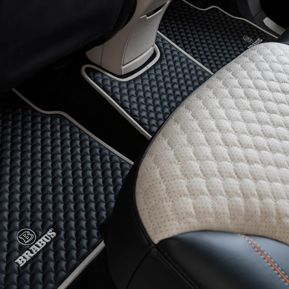 Pakken inkluderer kjøretøyets gulv, gulvmatter, hele bagasjerommet samt bagasjeromsmatte, alle trukket i forseggjort quiltet BRABUS finnskinn og Alcantara.