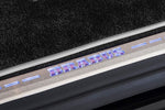 Instegslisten i rustfritt stål for bakdøren er montert på en stødig base av høykvalitets plast. Den LED-belyste BRABUS-logoen lyser opp i opptil 64 farger, synkronisert med bilens ambient-belysning.