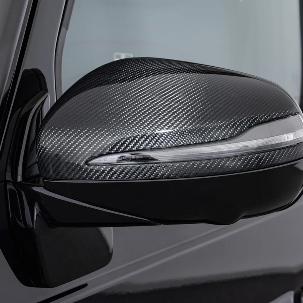 Speilkåpene i høykvalitets karbondesign fullfører det elegante BRABUS-utseendet.